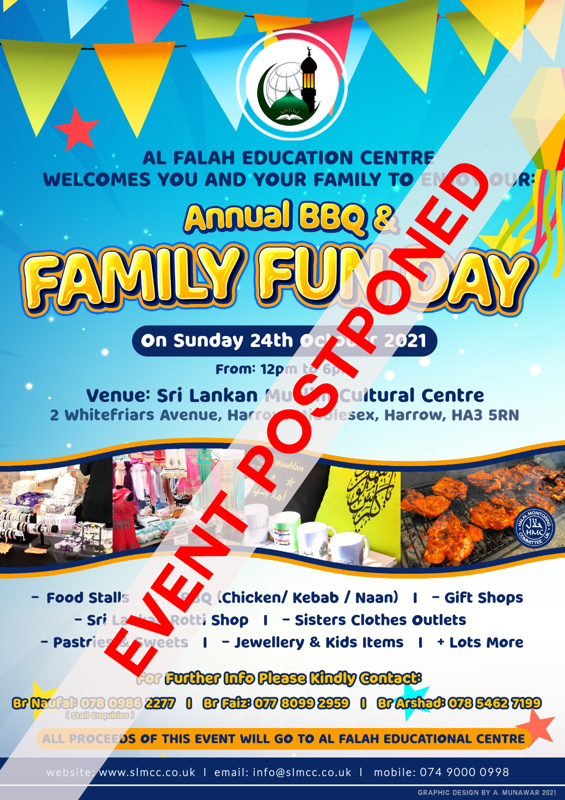 We regret to inform you that due to a rise of positive covid cases within London and in our Harrow community, our BBQ and family fun day event that was scheduled to be held on Sunday 24th October 2021 has been POSTPONED until further notice.