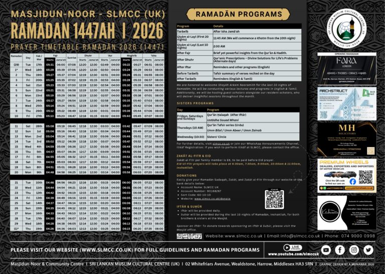 🔹 9.00am: Shaykh Arkam Nooramith in English and Arabic